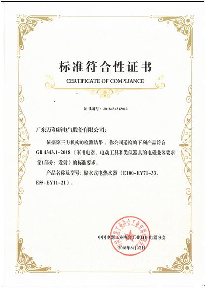 GB4343.1-2018“標(biāo)準(zhǔn)符合性證書”