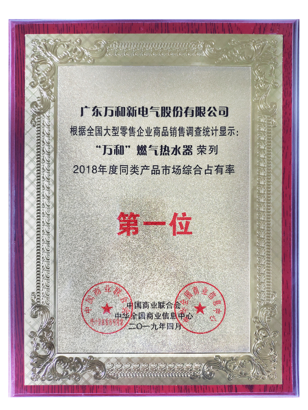 4月9日,由中國商業(yè)聯(lián)合會、中華全國商業(yè)信息中心共同主辦的2019(第二十七屆)中國市場商品銷售統(tǒng)計結(jié)果新聞發(fā)布會在北京舉行。會上正式公布了2018年度市場商品銷售統(tǒng)計結(jié)果,數(shù)據(jù)表明,“萬和”燃氣熱水器同類產(chǎn)品市場綜合占有率繼續(xù)蟬聯(lián)第一位,這是萬和在燃氣熱水器品類中連續(xù)十五年市場綜合占有率第一,同時,“萬和”燃氣熱水器亦被評為“2019年度中國消費品市場高質(zhì)量發(fā)展優(yōu)選品牌”。