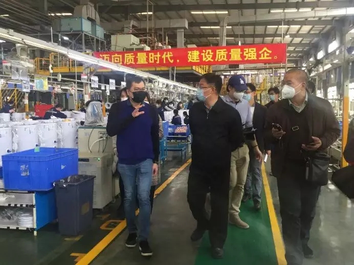(梁耀斌區(qū)長(zhǎng)在萬(wàn)和電氣副總裁、廣東萬(wàn)博電氣有限公司董事長(zhǎng)楊頌文陪同下考察復(fù)工復(fù)產(chǎn)情況)