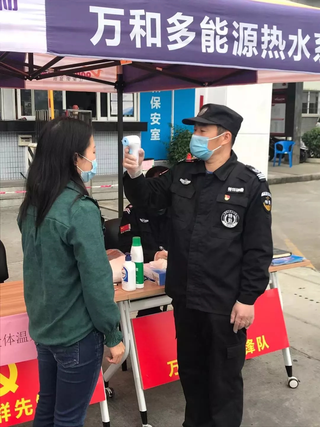 自2月10日復工起,在上級黨委、政府的統(tǒng)一領導下,萬和黨群先鋒隊配合疫情防控指揮部開展人員排查、信息登記、測量體溫、科普宣傳、送餐慰問等工作,為有需求的員工提供服務,共站崗值班超過600小時。