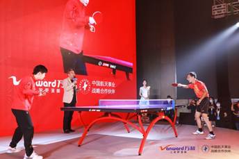 萬和集團(tuán)董事長(zhǎng)盧楚隆與孫穎莎乒乓切磋