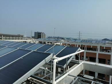 已交付使用的容桂外國語學校多能源集成熱水系統(tǒng)。