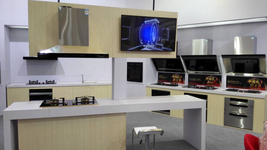 展出的萬和中式廚房電器系列產(chǎn)品。