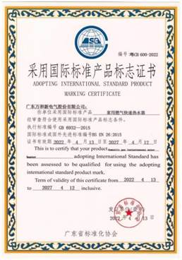 萬和獲國(guó)際標(biāo)準(zhǔn)產(chǎn)品確認(rèn)證書