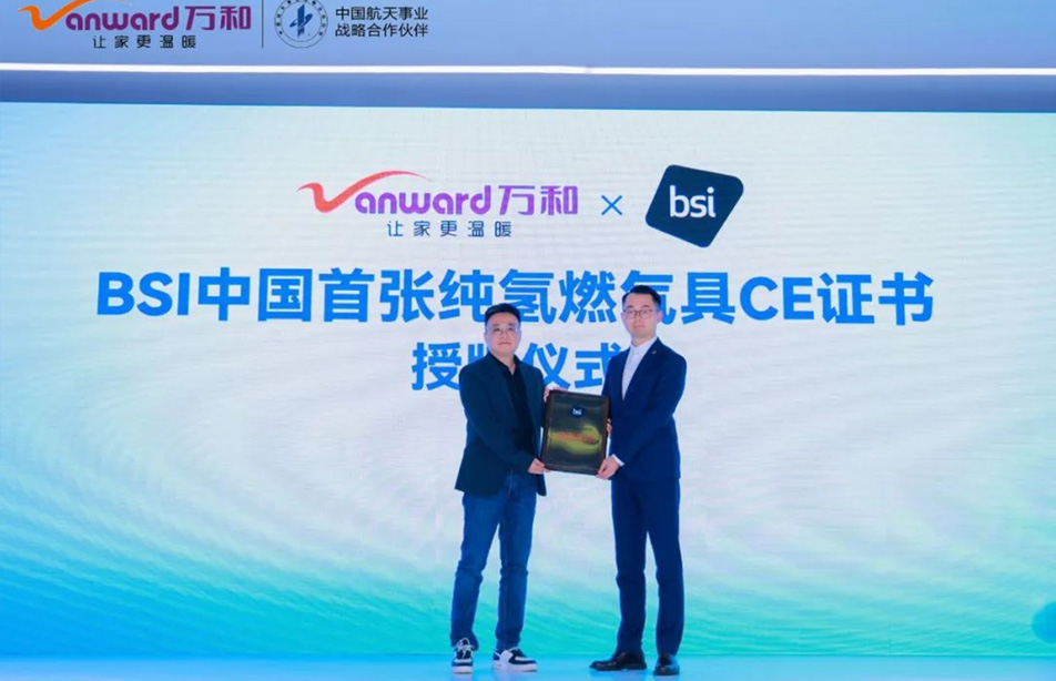 另一方面,將清潔能源作為家用燃?xì)饩呷剂霞右岳?,則是未來萬和產(chǎn)品版圖發(fā)展的又一個(gè)方向。此次萬和在發(fā)布會現(xiàn)場帶來了一系列清潔能源新品,包括中國第一臺純氫燃?xì)庠?、摻氫燃?xì)鉄崴骱蛽綒淙細(xì)獠膳癄t以及針對中國市場設(shè)計(jì)的全預(yù)混技術(shù)采暖爐。其中,萬和純氫燃?xì)庠钸€獲得了英標(biāo)管理體系認(rèn)證(北京)有限公司(簡稱:BSI)頒發(fā)國內(nèi)首張歐盟燃?xì)饩叻ㄒ?guī)證書,再次領(lǐng)跑行業(yè)。