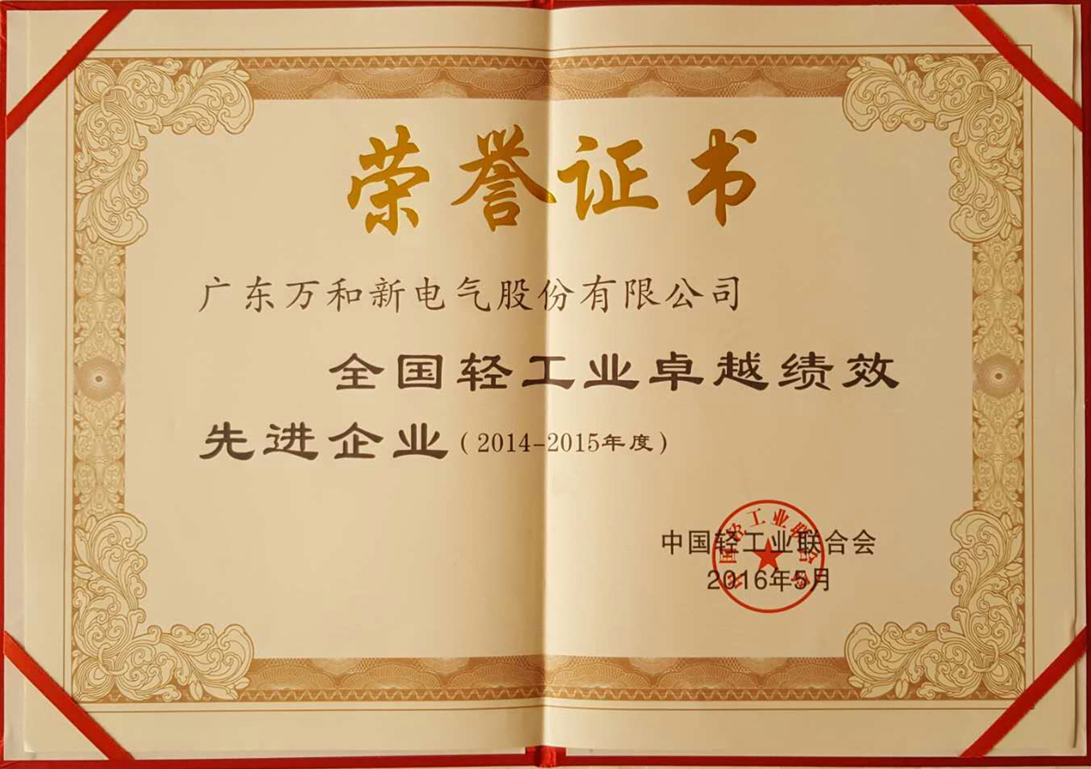 萬和被評為“全國輕工業(yè)卓越績效先進(jìn)企業(yè)”
