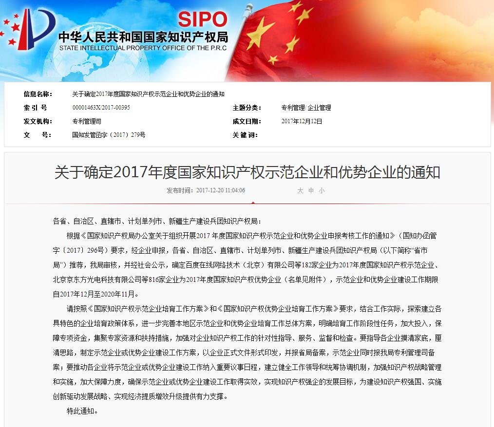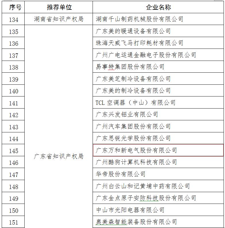 萬和入選“2017年度國家知識產權示范企業(yè)”