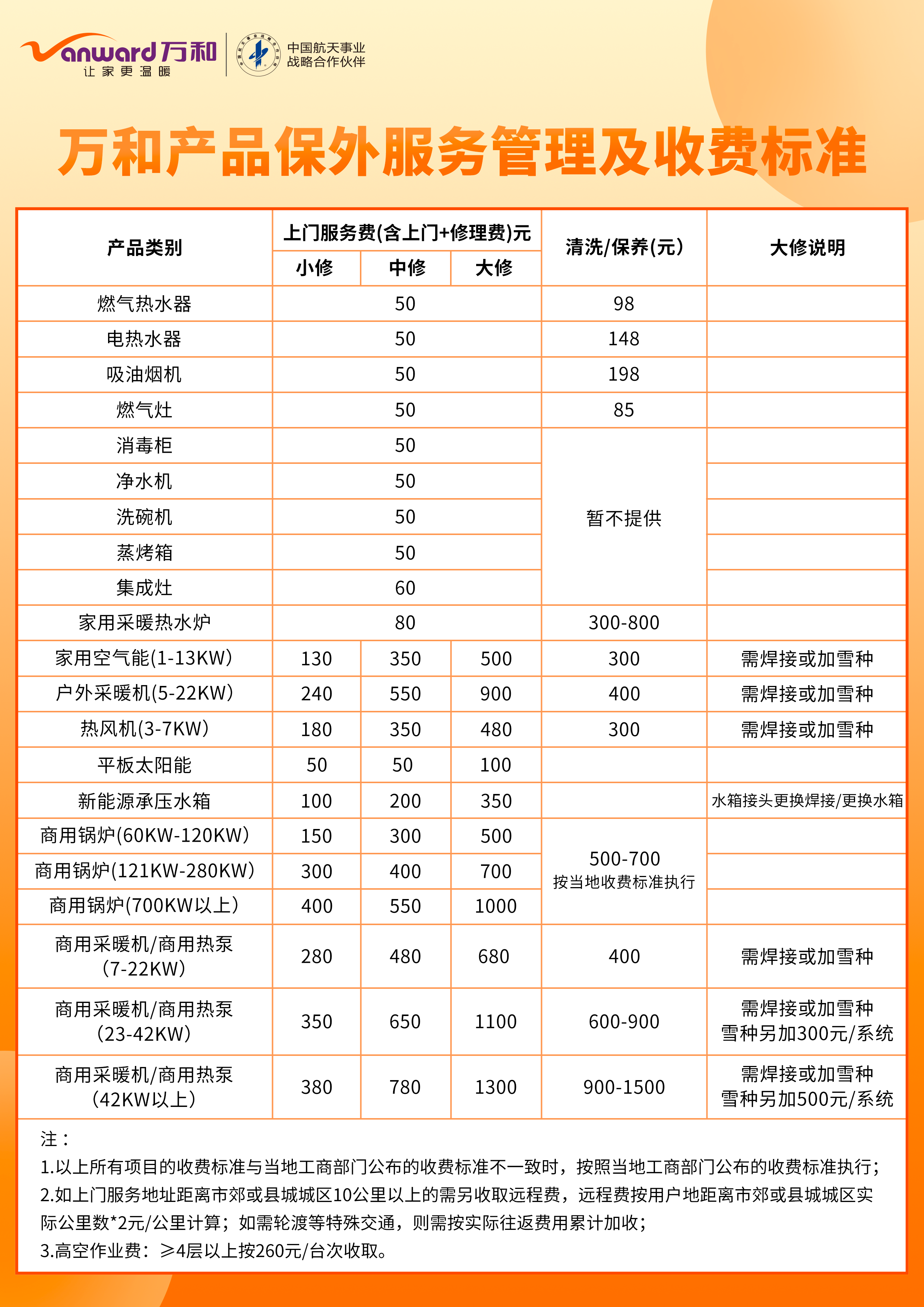 二、萬(wàn)和產(chǎn)品保外服務(wù)管理及收費(fèi)標(biāo)準(zhǔn)