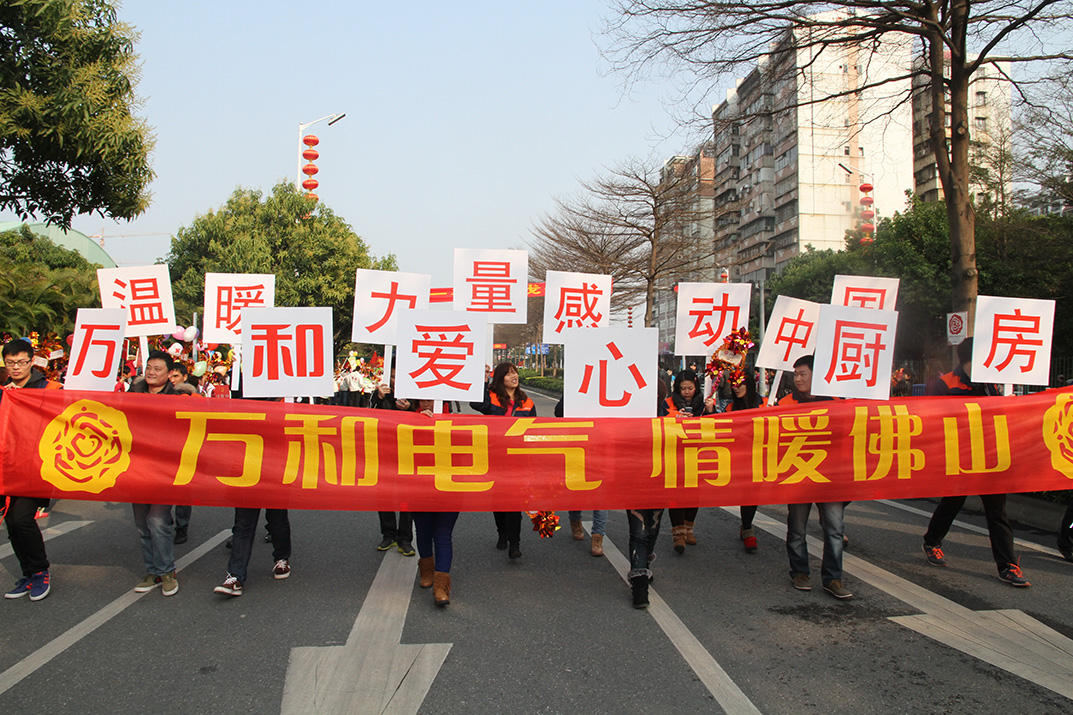 興高采烈的市民從四面八方如潮水涌來,通濟(jì)橋一帶成了人的海洋、風(fēng)車的海洋,笑聲滿滿,歡樂祥和的人群正是佛山人民正能量聚集的體現(xiàn)。情動(dòng)佛山,愛心也溢滿佛山。作為2014年“溫愛佛山”公益慈善系列活動(dòng)的組成部分,除了元宵慈善文化人人行外,第三屆公益慈善項(xiàng)目大賽也將隨之啟動(dòng)。廣東萬和新電氣股份有限公司作為佛山市知名企業(yè)之一,組成了自己的隊(duì)伍,高舉“萬和愛心廚房”及“溫暖力量,感動(dòng)中國(guó)”的標(biāo)語牌,走在了行進(jìn)的企業(yè)代表方陣中。