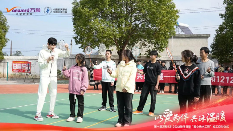 12月12日,以“以愛(ài)為伴 共沐溫暖”為主題的第十屆萬(wàn)和1212公益陪伴日暨“愛(ài)心熱水工程”竣工交付儀式在湖南隆回縣南岳廟九年義務(wù)制學(xué)校舉行。隆回縣人民政府副縣長(zhǎng)汪啟明、教育局副局長(zhǎng)馬暉暉、南岳廟鎮(zhèn)鎮(zhèn)長(zhǎng)饒岌等領(lǐng)導(dǎo),與萬(wàn)和新電氣股份有限公司董事長(zhǎng)盧宇聰、羽毛球世界冠軍鮑春來(lái)、南岳廟九年義務(wù)制學(xué)校校長(zhǎng)周輝、以及師生代表百余人和部分媒體共同參與了本次活動(dòng)。